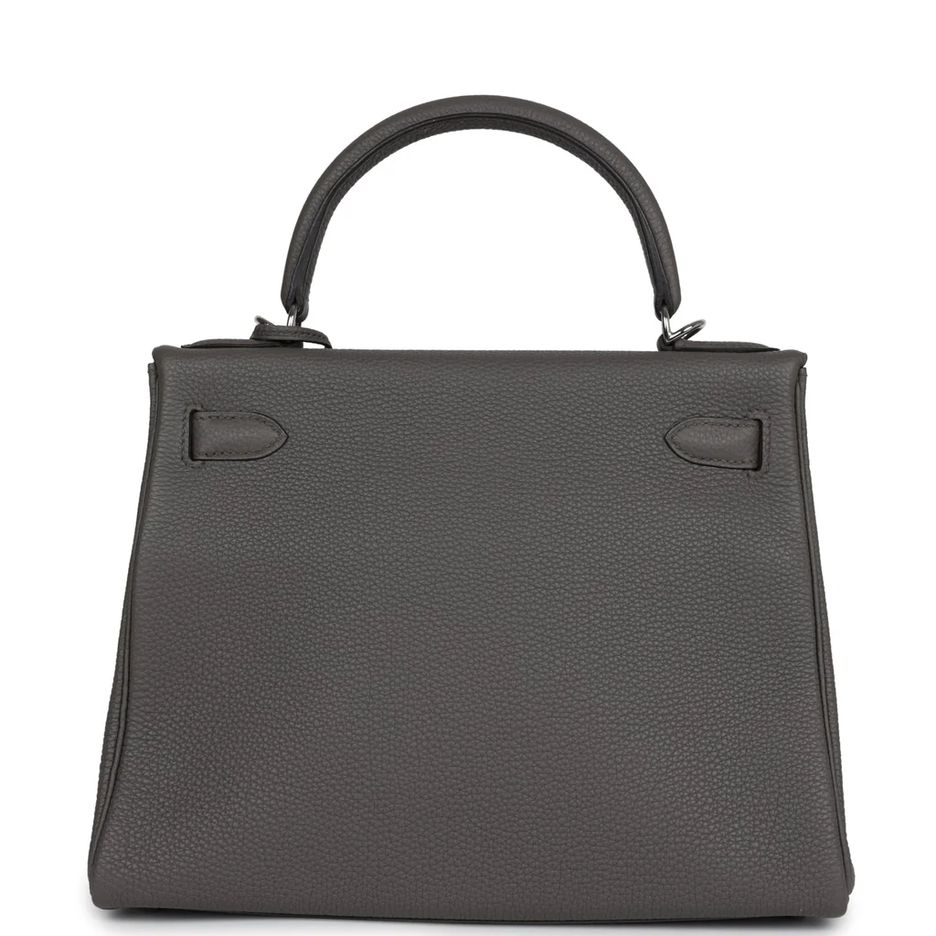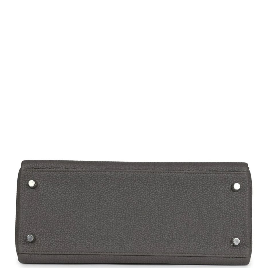 Hermes Special Order (HSS) Kelly Retourne 28 Malachite and Gris Perle Clemence Brushed Palladium Hardware