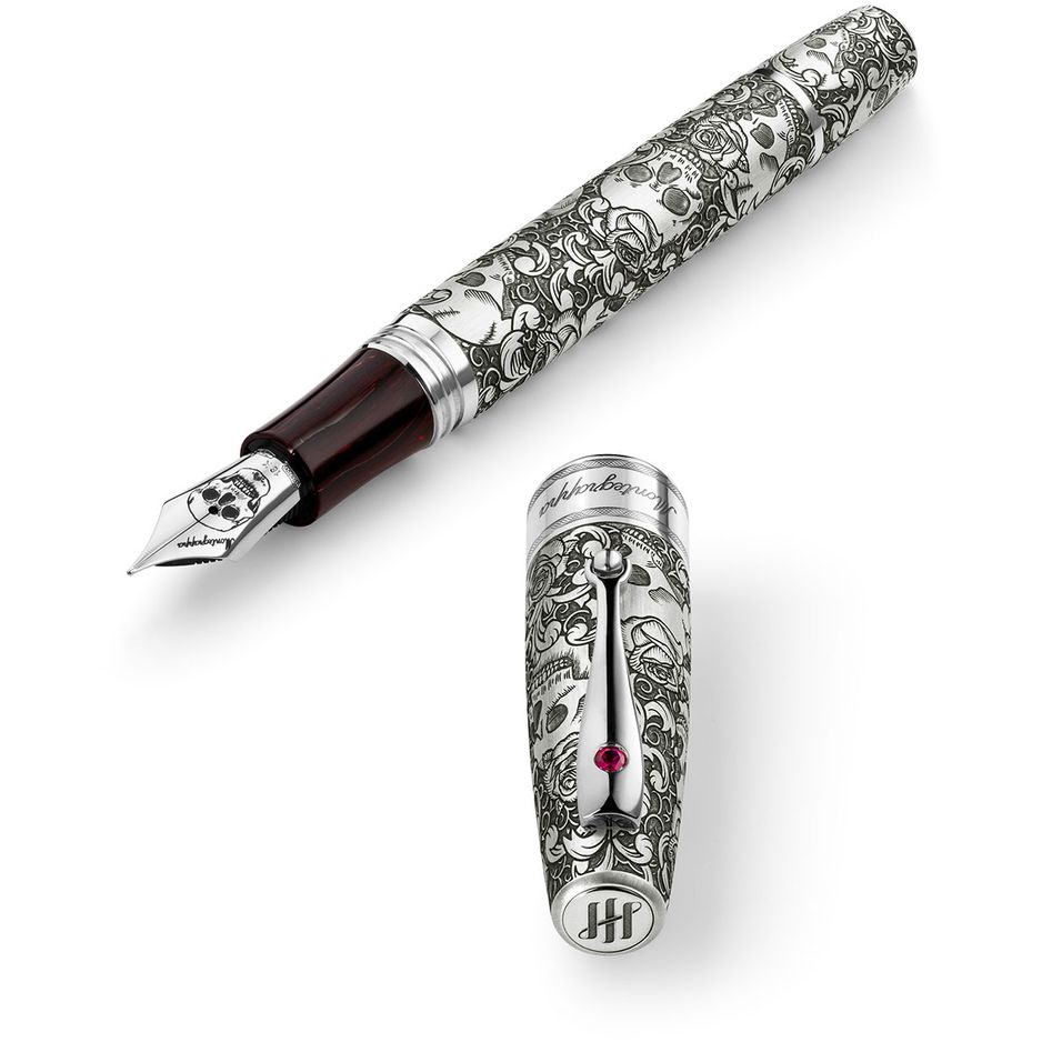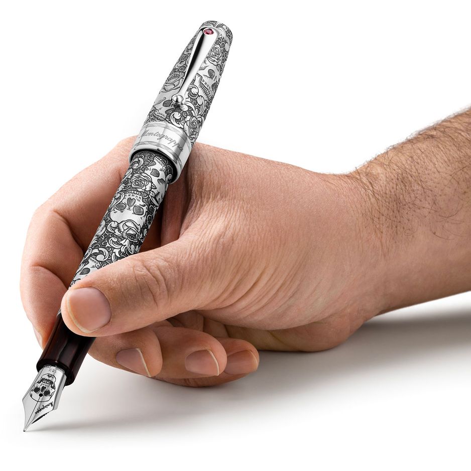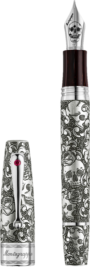 Montegrappa Skulls & Roses Fountain Pen, Silver
