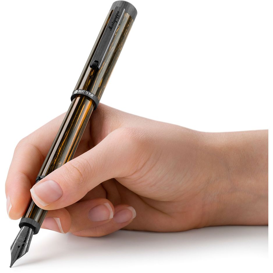 Montegrappa Right To Play, Fountain Pen, Ultra Black IP Steel, Steel Nib
