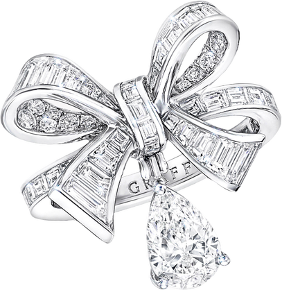 Tilda’s Bow Baguette Cut Diamond Drop Ring Graff