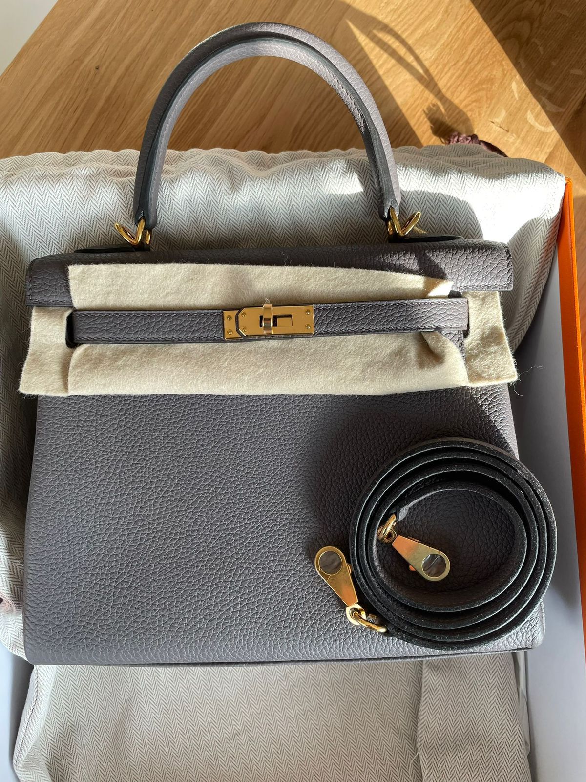 Hermes Kelly 25 Etain / Togo / GHW B Stamp