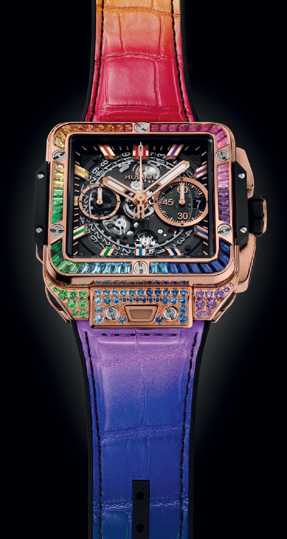 Философия бренда — «Искусство слияния». Hublot постоянно стремится к инновациям и совершенству, объединяя традиции часового мастерства с современными технологиями.